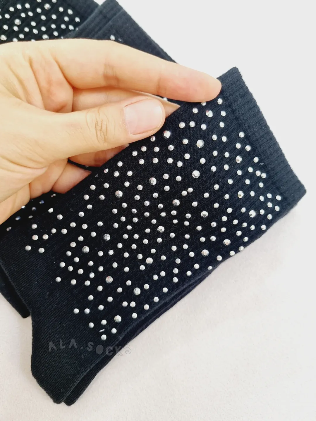 جوراب ساق بلند نگینی جنس : نخ پنبه(کیفیت روهزار رنگشم کاملاً مشکیه) سایز : فری مناسب سایز پای ۳۶ تا ۴۰ باتوجه به صفحه نمایش گوشی های مختلف امکان اختلاف رنگ تا چند درجه وجود دارد #جوراب_مشکی#جوراب_ساقبلند #جوراب_مشکی#جوراب_نگیندار