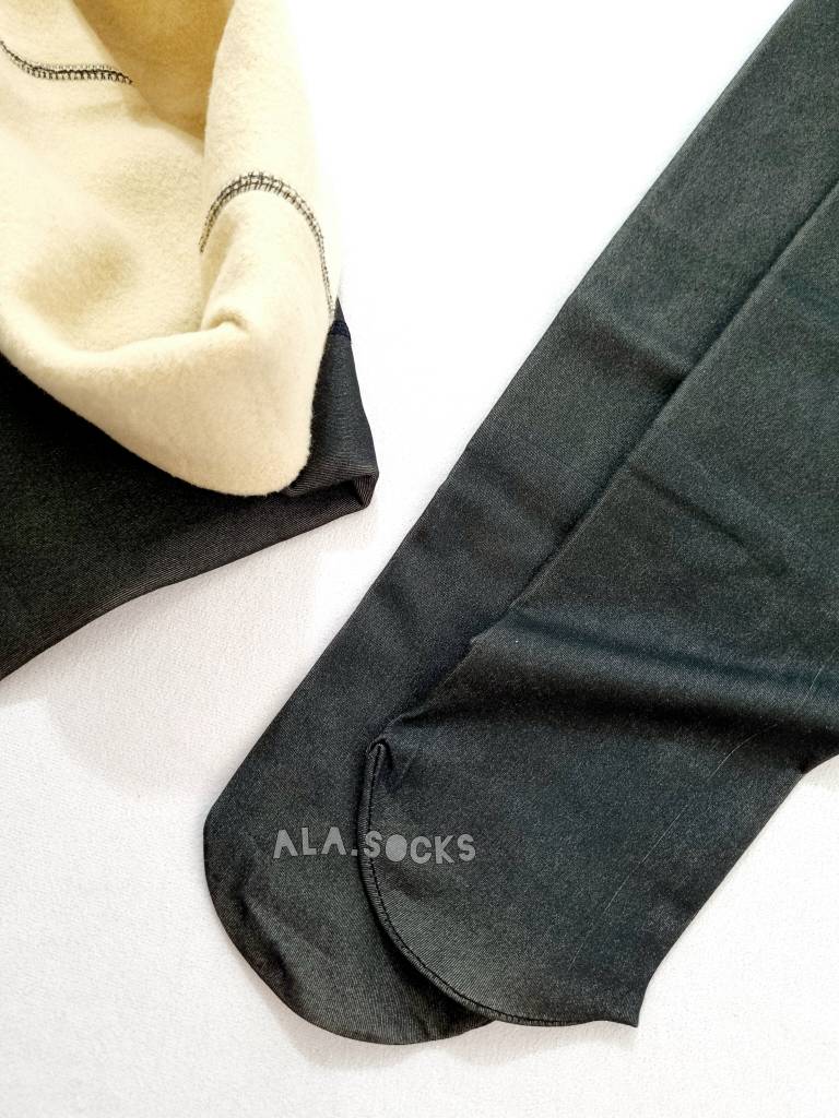 جوراب شلواری سه بعدی داخل خز است و از بیرون نمای جوراب پارازین شیشه ای دارد.