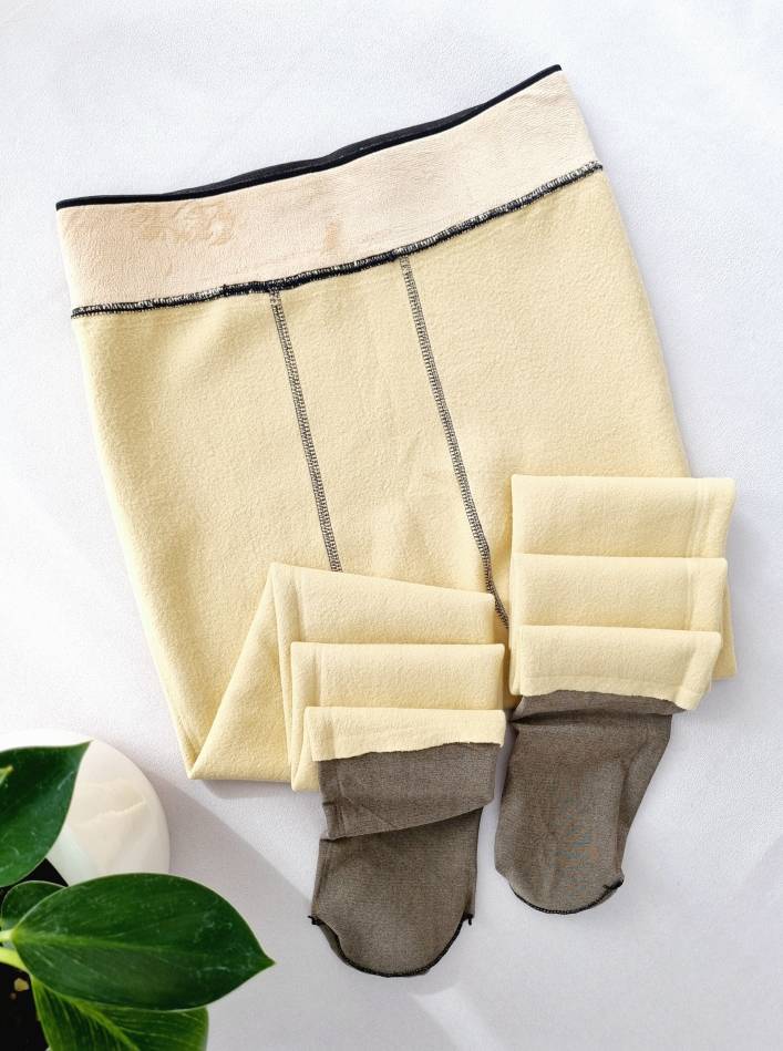 جوراب شلواری سه بعدی داخل کرکی است و از بیرون نمای جوراب پارازین شیشه ای دارد.